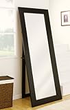 - Modern standing mirror leans against the wall with attitude in a sleek back frame with matching finish
