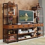 Home Styles 5050-34 Modern Craftsman 3-Piece Gaming Entertainment Center, Distressed Oak Finish - The modern craftsman gaming entertainment center is made of poplar solids and oak veneers with new ager brown metal accents. Comes with distressed oak finish. This set includes the gaming entertainment center and two media towers. It has four storage drawers and six fixed shelves. It provides much needed storage space. Easy to assemble. Measures 94-inch width by 18-inch depth by 72-inch height.