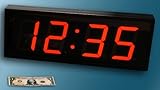 Large Digital LED Wall Clock with Count Up/Down Timer - Large Digital LED Wall Clock, Dimensions: 18 Wide x 6 High x 2 Deep, Weight 6 Pounds, Giant 4 inch Bright LED Digits, Visible up to 200 feet! 12 or 24 hour operation, Timer function - count up to a maximum 99 minutes, count down to zero from a maximum 99 minutes, Remote control operates all functions, Rugged aluminum case, USA 120 Volt AC, Battery back up to retain time during power loss, manufactured to Commercial/Industrial Quality specifications, Great for churches, schools, factories, warehouses, retail stores, fitness centers, restaurants, etc.