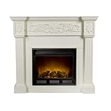 SEI Calvert Electric Fireplace, Ivory - Crisp is the perfect description for this traditional ivory fireplace. Fluted columns frame the firebox on each side and an elegant floral design across the top of this classic fireplace draws attention. This beautiful mantel is finished off with understated molding that complements the design fabulously. Requiring no electrician or contractor for installation allows instant remodeling without the usual mess or expense. In addition to your living room or bedroom, try moving this fireplace to your dining room for a romantic dinner or compliment you media room with a ventless fireplace below your flat screen television. Use this great functional fireplace to make you home a more welcoming environment. 44-1/2-Inch W by 14-1/2-Inch D by 40-1/4-Inch Tall; Crisp ivory finish; Perfect media room accent; Mantel supports up to 85-pound; Elegant floral trim; Accommodates up to a 47-Inch flat screen TV; Firebox front - 23-Inch Wide by 20-Inch Tall; Remote control (2 AAA Batteries Required); Realistic flickering flame effect; Long life LED lights; 120-volt-60Hz, 1500-Watt / 5000 BTUs, 12.5 Amp; Easy to use adjustable thermostat; Safety thermal overload protector; Adjustable flame brightness control; Plugs into standard wall outlet; Tested to heat 1500-cubic feet in only 24-minute (14-feet by 14-feet by 8-feet); Uses about the same energy as a coffee maker; 100-percent energy efficient with low operating costs; Produces zero emissions or pollutants; Consuming no wood or fossil fuels; No combustion, glass remains cool to the touch.