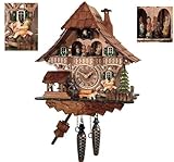 Traditional Cuckoo Clock Black Forest House with dancers [Kitchen & Home] - Cuckoo Clock Black Forest House of the Black Forest with mill wheel, dancers and cuckoo Musical movement and quartz movement with 12 melodies Height 36 cm width 31 cm manufactured in the Black Forest